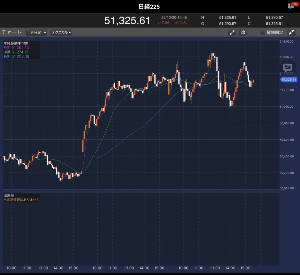 - 日経平均株価: 終値は51,325.61円で、前日比+17.96円 (+0.04%)と小幅上昇。研究によると、BOJの金利据え置きが市場の安定に寄与した可能性が高いが、変動性は低い水準を維持。