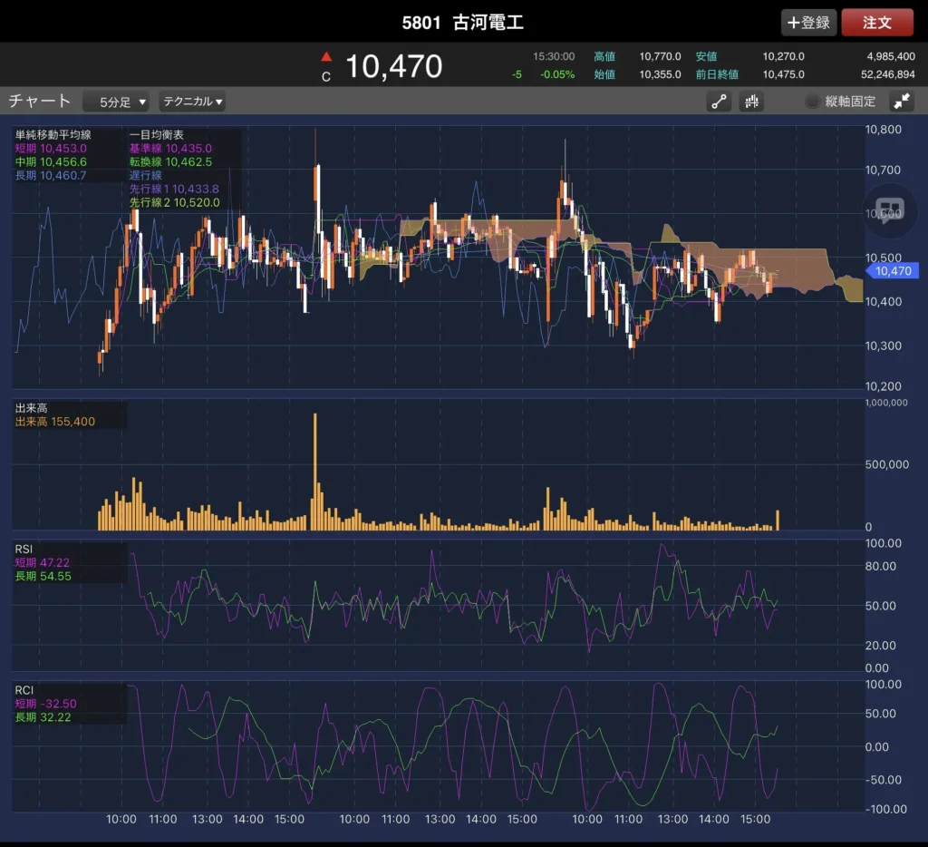 古河電工も10000円を突破して、いまはちょっとヨコヨコ。