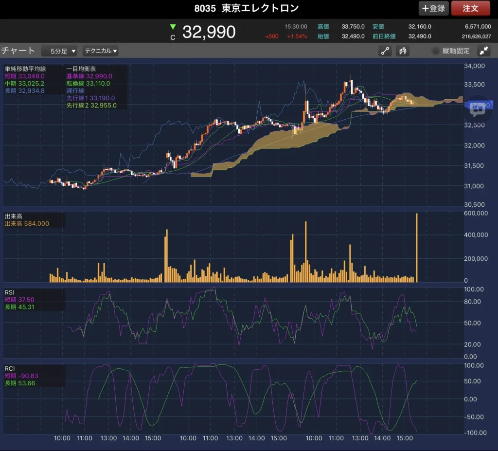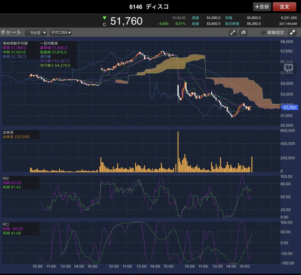 アドバンテストとは対照的にディスコは下げました。むずい。
