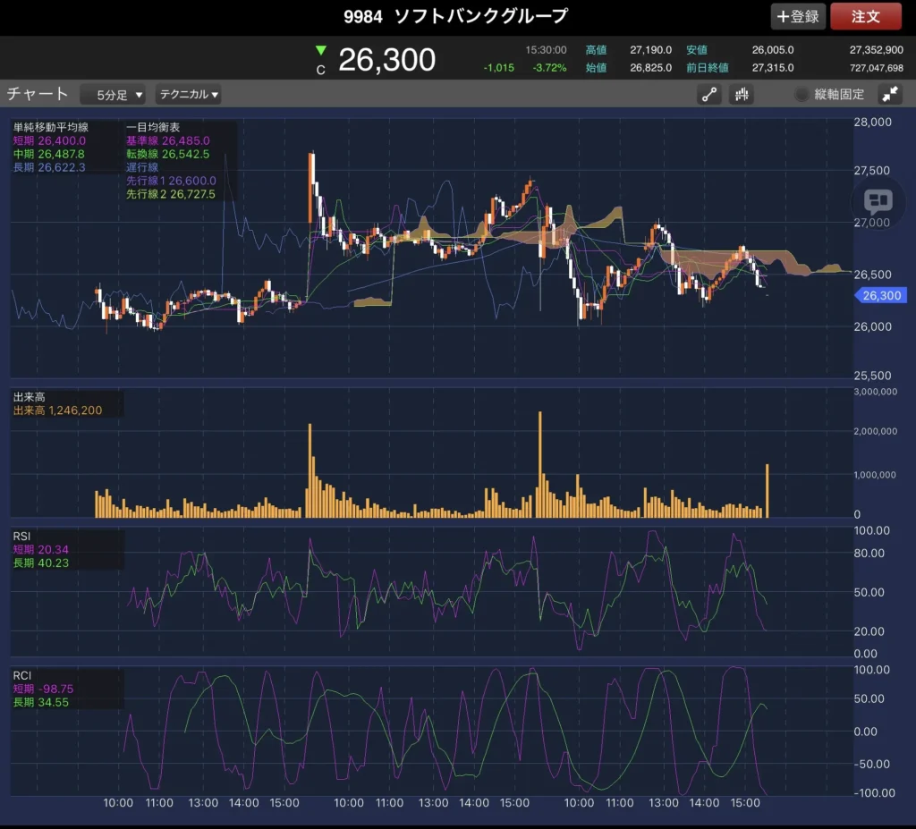 今日は下げたソフトバンクグループだけれど、月足で見たら垂直上げ。