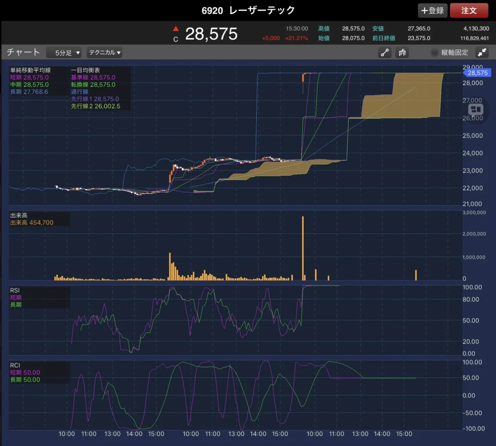 前日はアドバンテストがストップ高。本日はレーザーテックがストップ高なんて、誰が予想できるのよ。